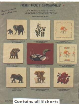 Heidi Poet originals elephants, flowers, loon, poppy, roses 8 charts! LAST ONE